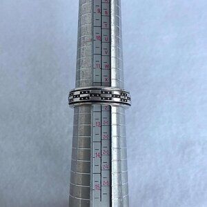 Solid Sterling Silver 925 Wide Geometric Pattern Unisex Spinner Band Ring Sz 12