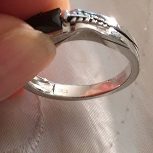Solid Sterling Silver Black Baguette CZ Ring