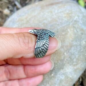 Solid Sterling Silver Eagle feather ring chunky wide boho biker sz 9, 10 and 12