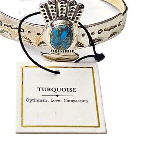 Add a touch of timeless elegance to your jewelry collection with this stunning Solid Sterling Silver Turquoise Cuff Bracelet. Featuring intricate designs and set with genuine natural turquoise, this bracelet combines beauty and craftsmanship in one striking piece.