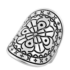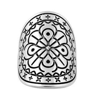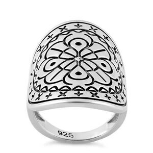 Solid Sterling Silver Bohemian Floral Dome Shield Ring New