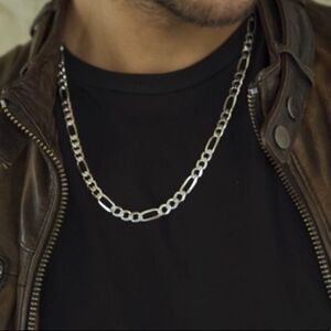7MM in Thickness, Diamond Cut Figaro Lonk Chain Necklace.