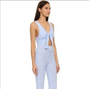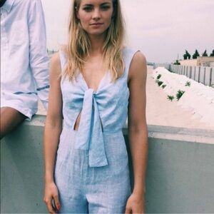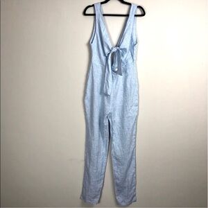 Solid & Striped 100% pure Linen The Jumpsuit Sky blue front tie women’s size M