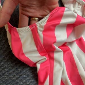 Note: Last two model photos show fit only — this suit is hot pink and white striped.