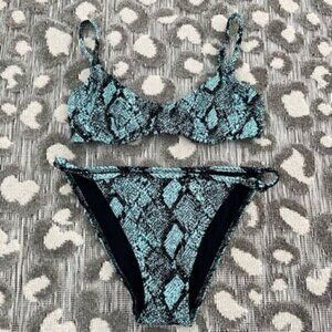 Solid & Striped Blue & Black Snakeskin Bikini Set – Top XS / Bottom M