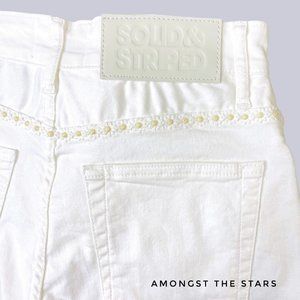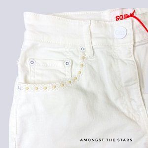 Brand new with tags, Women's size 26. Retails for $158! These Solid & Striped Daisy Trim High Waisted White Denim Shorts are so fun and cute! So unique with white and yellow daisy floral trim on the front pockets and along the back. Flattering with the split side hem. Snap button and zipper closure.