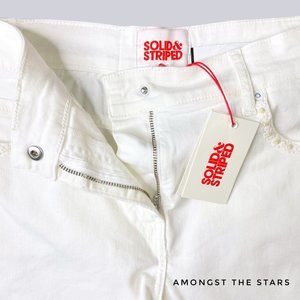 Solid & Striped Daisy Trim High Waisted White Denim Shorts