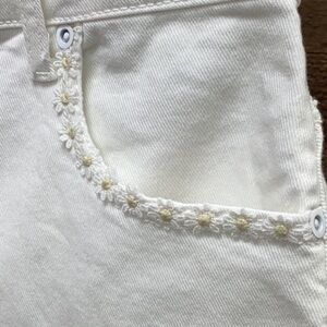 Solid & Striped Daisy Trim High Waisted White Denim Shorts Size 24