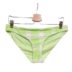 Solid & Striped Lime Green White Plaid Gingham Reversible Bikini Bottom Size XL