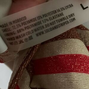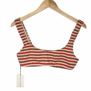 Solid & Striped Morocco Shimmer bikini top Size large Brand new with tag Red and brown striped Shimmer material No padding Pit to pit 15” Length 11” Tags solod&stripes,bikini top ,swim,bikini,new,NWT,revolve D1222