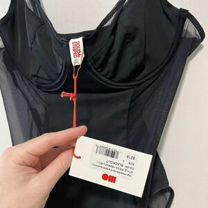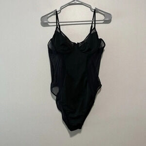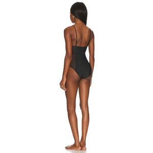 Solid & Striped NWT The Spencer One Piece Mesh Panels Black Swimsuit Size Large