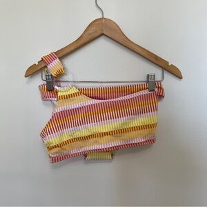 Solid & Striped One Shoulder Bikini Top & Bottoms Size M