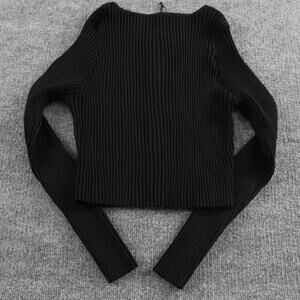 Solid Striped Sweater Womens XL The Fleur Cardigan Black Ribbed Minimalist Chic
