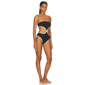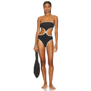 Super chic and strapless, The Bella One-Piece, is the perfection combination of sexy and classic. Flattering cut-outs highlight your best assets for days in the sun. Double this black one-piece as a bodysuit this summer.