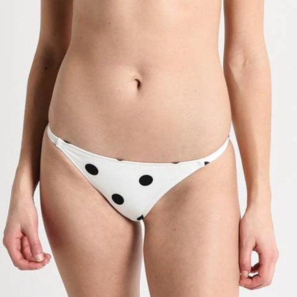 the daringly cute Solid and Striped The Morgan Bikini Bottom takes your beach look to the next level featuring polkadot print and hip-bearing strap that allows the bikini bottom to sit extra close to your body.