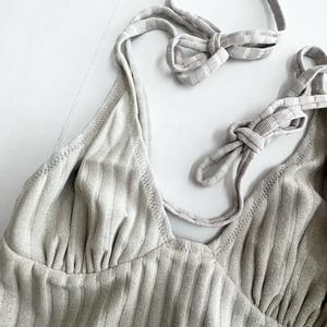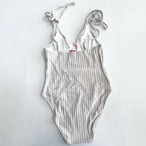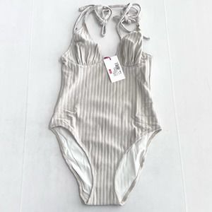 Solid & Striped The Olympia Solid Rib Silver One-Piece Shoulder Tie Swimsuit