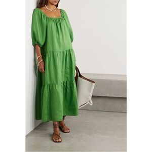Solid & Striped Tiered Peasant Maxi Dress in Palm Green