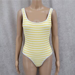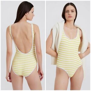 Solid & Striped Anne-Marie Ribbed One Piece Lemon Stripe Women's Small NEW