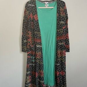 This solid teal Lularoe Julia dress is super cute and comfy! It is a great basic dress for your closet. The fabric is super soft and stretchy. The paired Lularoe Sarah Cardigan is also available in my closet.