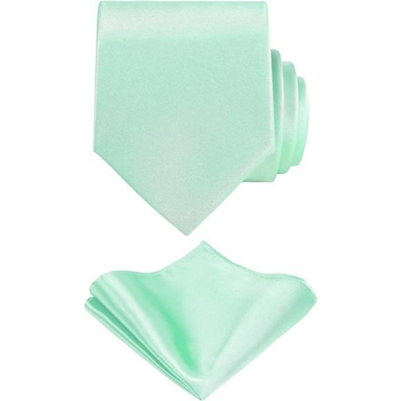 Solid Tie Mint Satin Color Formal Necktie and Pocket Square Sets in Gift Box