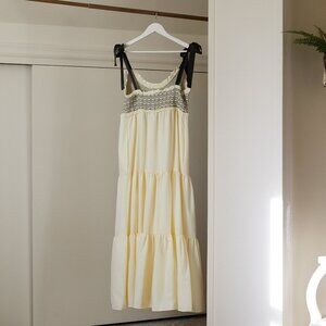 Solid Tiered Maxi Dress | Cream w/ Black Detail {Beach, Spring Break} NWOT