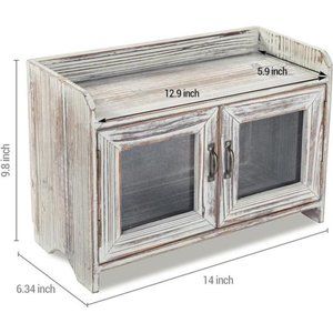 🧿COUNTER-TOP CABINET: 14-inch wooden tabletop condiment or beauty-product cabinet with weathered whitewash finish