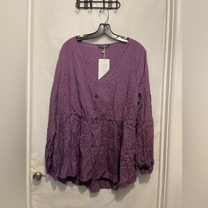Solid V-Neck Stitching Women Blouse Long-Sleeve Summer Shirt Buttons Loose Tops