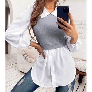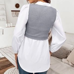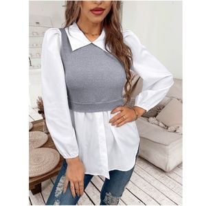 Solid Vest Over Shirt Button Detail Collar Blouse