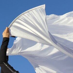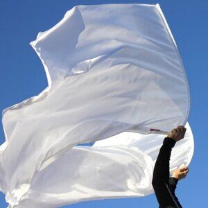 Light of the World worship flags are a special cut sewn with a frilly edge. The rods are Flex™(firmer) or Superflex™(more flexible) rods by Beauty for Ashes® Boutique. They are a solid white. They make the worship easy and simple for even the beginner, and even better for the advanced. Smaller flags can be made upon request if needed. Our personal favorite is the Regular size flags with Superflex™ rods for a flowy Holy Spirit feel on these white flags. Rush order fee and shipping are included in the price!