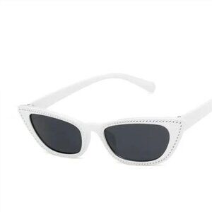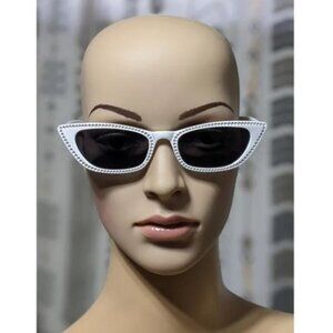New White Rhinestones Black Tinted Lenses Fashion Glasses Plastic Frames Plastic Lenses Tags: Rectangle Glasses #G128
