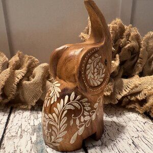 Solid Wood Etched Elephant Table Top Decor