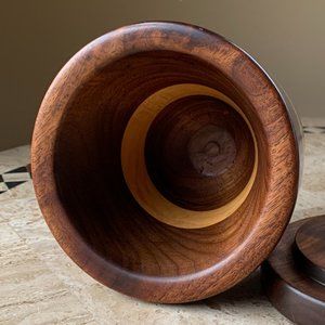 Solid Wood Jar with Lid Hand Crafted Turned Container Rustic Decor