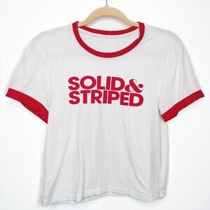Solid and Striped Graphic Red White Short Sleeve Ringer Baby Tee Crop Top Medium