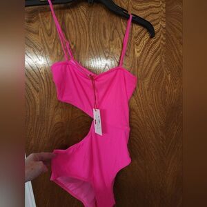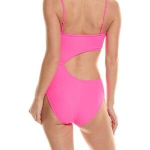 About the brand: Beach and resort swim essentials. The Cameron One-Piece in shocking pink with ribbed fabric, adjustable shoulder straps and cutout design Slip-on styling Moderate seat coverage 90% nylon, 10% spandex Lining: 87% nylon, 13% spandex Hand wash Imported