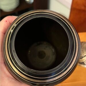 This medium size black and brass urn is made of high quality, solid brass. 7”h x 4”w 45cubic inches.