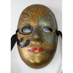 Solid brass mask, enamel paint. Halloween, Mardi Gras, terrorize house guests!