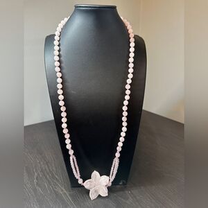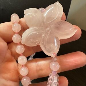 ALL ROSE QUARTZ. Hand knotted, no clasp. Most of the beads are 8mm.