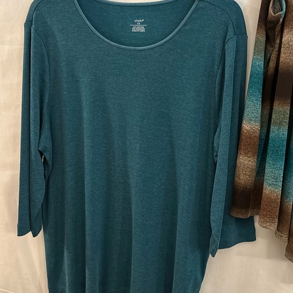 CJ Banks teal 3/4 sleeve tshirt. Mint condition! Check out coordinating vest. Buy both and save automatic 15% bundle price!