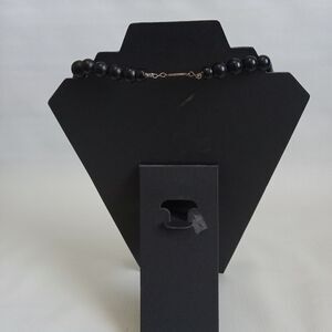 Solid Black Lightweight Single Strand Geometric Multiple Shapes Beaded Necklace