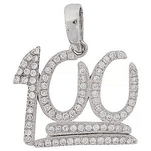 Solid Silver 14K White Gold Finish New 100 Pendant