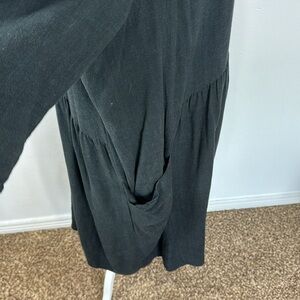 Solika Linen Blend Shift Dress Women's L Soft Black Slouchy Pockets, waist pleating, great used condition, woven fabric is 70 rayon, 30 linen, back zipper, medium weight fabric, 3/4 sleeve, neutral, minimalist, comfy, breathable