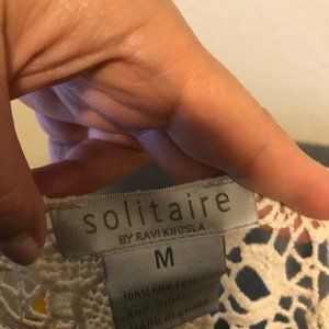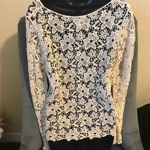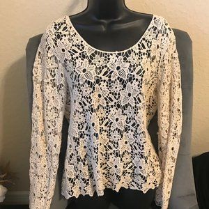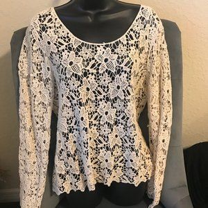 Ladies crochet sweater, cotton blend, very soft, ivory color. No Stains, no snags, comes from a smoke free home.