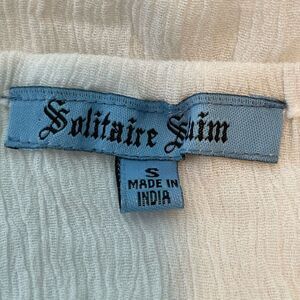 Solitaire Anthropologie Embroidered Swim Cover Up Tunic White Blue Round Neck Be