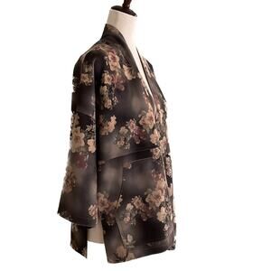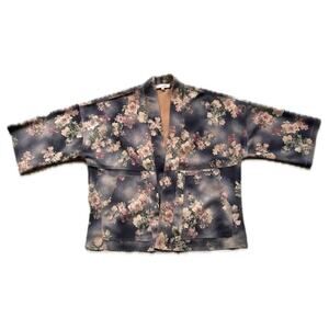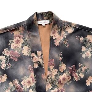 Solitaire | Anthropologie Jacket Faux Suede Open Front Kimono Floral Women's S