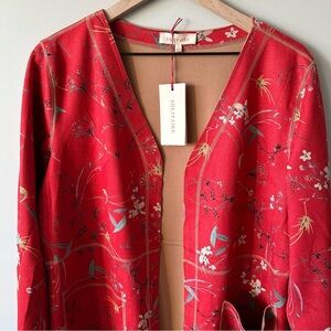 Solitaire Anthropologie NWT Floral Faux Suede Open Front Boho Jacket Large