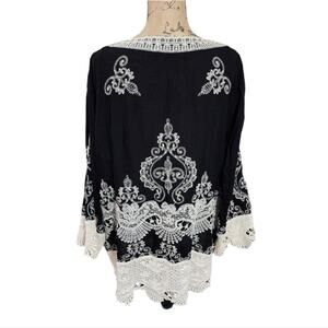 Solitaire Black And Cream Crocheted Lace Kimono Jacket Plus Size 2X New