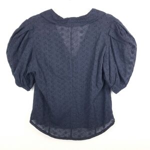 Solitaire Black Puff Sleeve Eyelet Top NWT