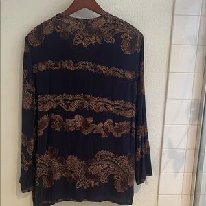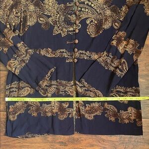 Elegant top with intricate gold patterns. Perfect for stylish occasions.