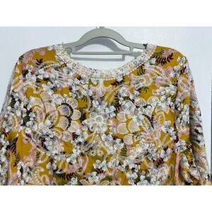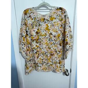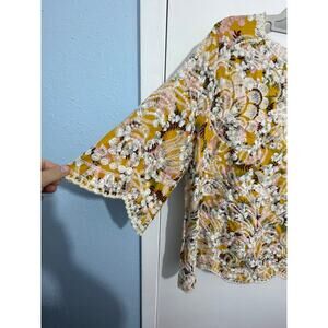 Solitaire Blouse Large Yellow Floral Embroidered Boho Cottage Core Country Club Officecore, great condition.