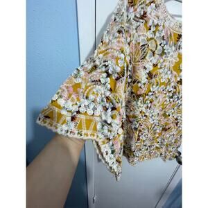 Solitaire Blouse Large Yellow Floral Embroidered Boho Cottage Core Country Club